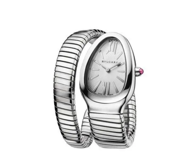 作为蛇形腕表的顶级品牌之一,宝格丽的 Serpenti 系列早已成为奢侈制表业的传奇符号。宝格丽便以古罗马神话中蛇的重生寓意为灵感,将灵蛇的优雅与腕表的功能性完美融合。其标志性的螺旋形表链如同蛇身般紧密缠绕手腕,18K 金的温润光泽与宝石镶嵌的蛇眼(祖母绿、红宝石或钻石)碰撞出致命诱惑,表盘巧妙隐藏于蛇头之中,仿佛时间在神秘的凝视下静静流淌。从伊丽莎白・泰勒佩戴的古董款到现代的 Serpenti Seduttori 鎏光蛇影系列,宝格丽始终坚守 “形神兼备” 的设计哲学,让灵蛇成为永恒的奢华象征。